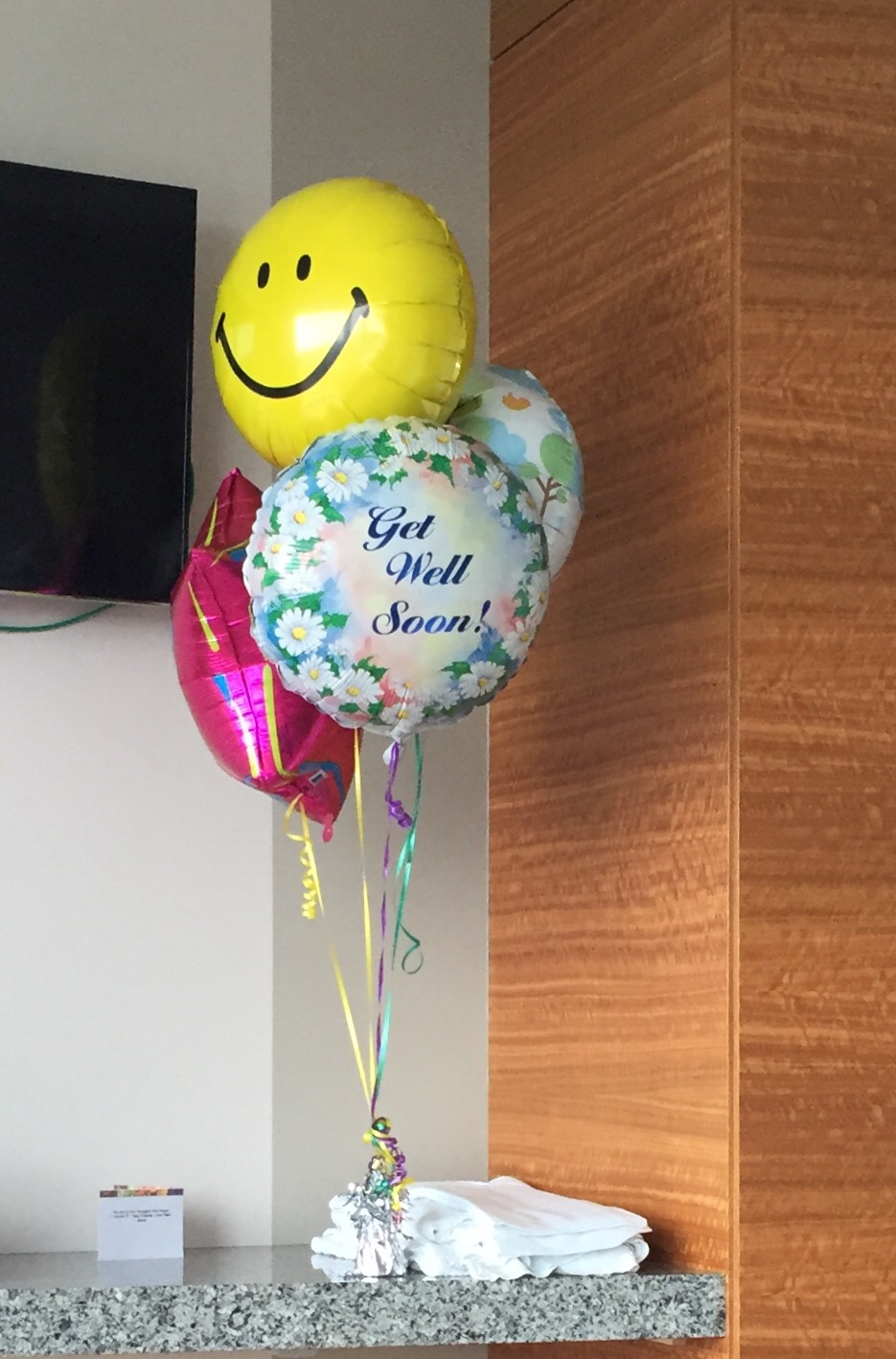 I have terrific co-workers! They gave me a special #crushit themed care package with magazines and books to read, games to play, and sweets to munch on when the time comes. They also sent me a nice get well note that lifted my spirits on day 2 and while I’m away they kindly show their support by decorating their desks with the official drink of bobbeatscancer #Crush_it